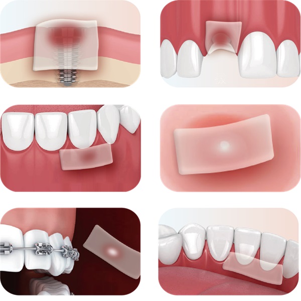 Bona-aid™ is adaptable to almost every kind of oral wound site, including but not limited to: