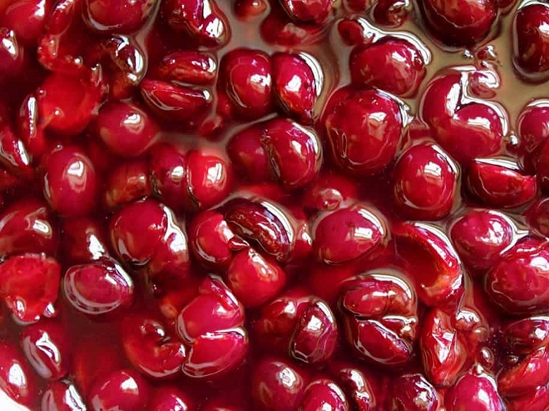 • Whole cherries in thick syrup